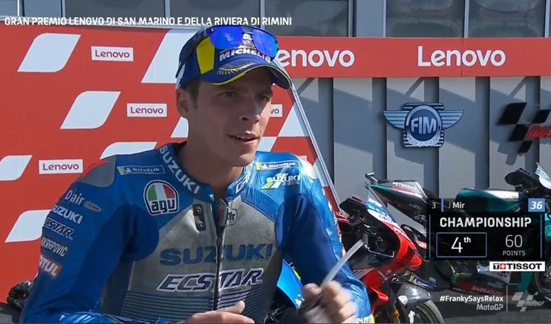 A peine descendu de sa Suzuki GSX-RR officielle après avoir obtenu la troisième place lors du Grand Prix de Saint-Marin à Misano, Joan Mir s’est confié devant la caméra du site MotoGP.com avec la joie d’avoir obtenu le podium qu’il avait raté lors de la dernière course en Autriche…