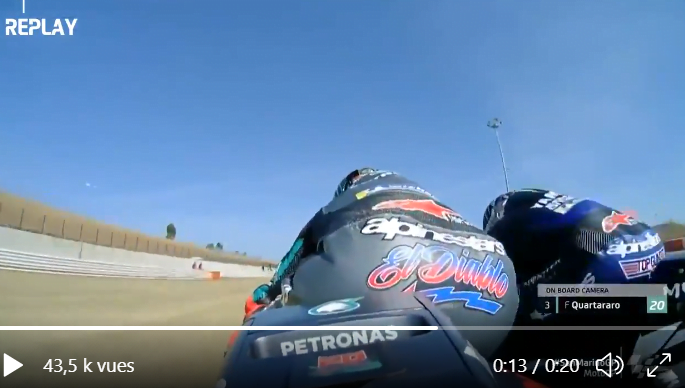 Esprit similaire pour Fabio Quartararo qui sera son partenaire l’année prochaine et qui est leader du présent championnat avec la Yamaha Petronas : « c’est toujours agréable de se battre avec un pilote quand tout est propre, l’an dernier on avait fait ça. J’aime ce jeu ». Jusque-là, donc, tout va bien…