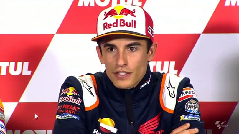 Marc Márquez : « non. Je ne travaille pas. Jamais. Peut-être qu’un jour j’en aurai besoin, mais pour le moment je ne travaille pas là-dessus. Mon meilleur psychologue est mon équipe, ainsi que les gens autour de moi. Et cela est la meilleure façon de faire. »