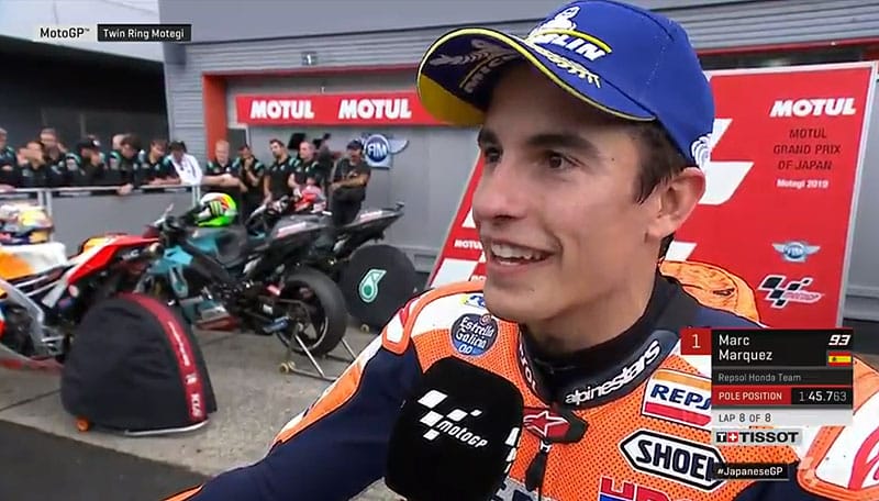 A peine descendu de sa Honda RC213V officielle après avoir obtenu sa première pole position sur la grille de départ du Grand Prix MotoGP du Japon, Marc Márquez s’est confié devant la caméra du site MotoGP.com en pensant à la course de dimanche...