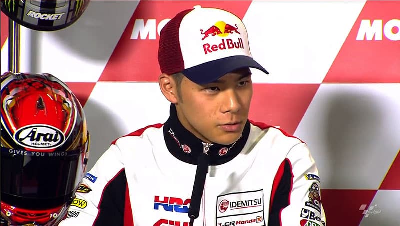 Le pilote japonais précise : « mon problème principal est que je peux pas tenir la moto au freinage, et en particulier les longs freinages deviennent de pire en pire. Donc je ne devrais pas le dire, mais ce sera week-end difficile ici (rires) mais j’essaierai de faire de mon mieux, en espérant que la douleur n’augmentera pas. Je pense que je prendrai des antidouleurs dès la FP1. »