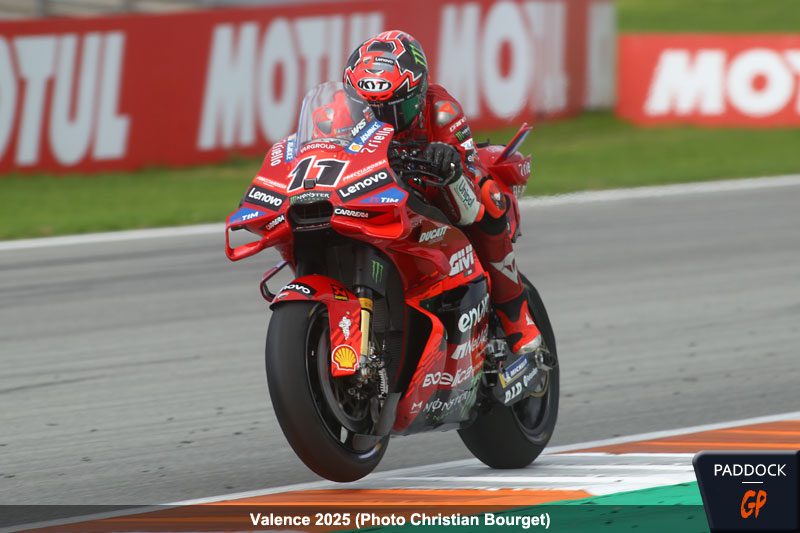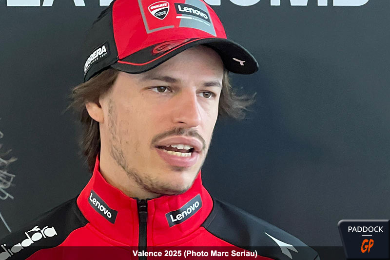 Avec deux points en deux courses, l’aventure de l’Italien en catégorie reine s’est achevée, exception faite des essais libres de mardi à Cheste. Ayant contribué aux performances de l’équipe Ducati Lenovo et réalisé une prestation convaincante, Bulega occupera le poste de pilote d’essai en 2026. L’Italien a partagé ses impressions lors d’une interview avec notre collègue de Motosan, Alba Casares.