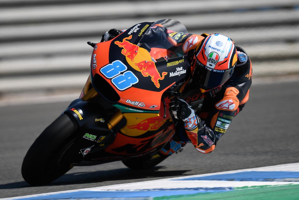 C’est un fait remarqué : on ne parle plus trop de Jorge Martin et de son avenir au sein d’u team Pramac Ducati. Celui qui pensait tout haut qu’il serait cette année le seul pilote Moto2 à pouvoir grimper en MotoGP a d’autres préoccupations. Du genre à lancer véritablement sa saison de Moto2. Car après trois Grands Prix, il n’est pas celui auquel on penserait pour la promotion vers la catégorie reine, à la lecture des classements. Au Qatar, il a fait choux-blanc, et ses deux apparitions à Jerez n’ont été récompensées que par un seul podium.