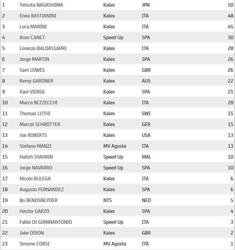 Classement Championnat Moto2 après Jerez 2 :