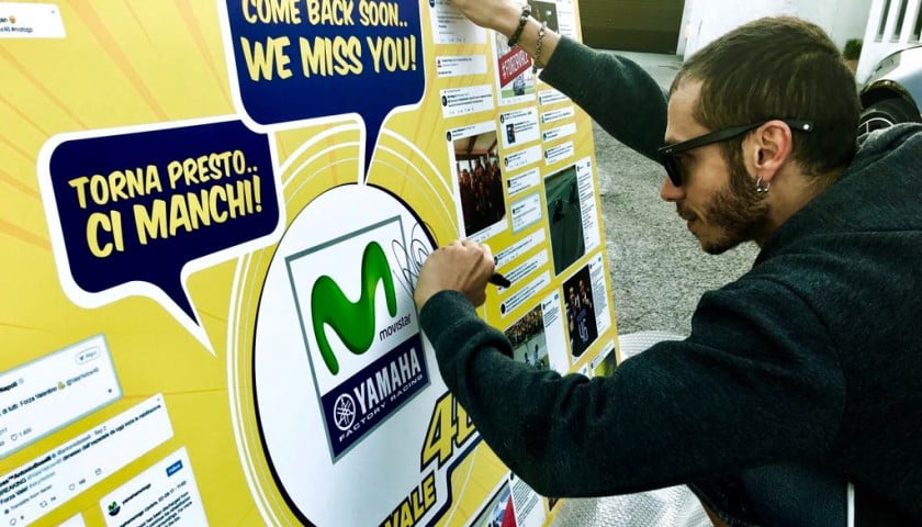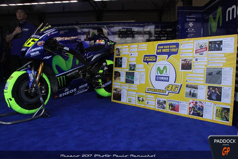 Vous vous souvenez évidemment du forfait de Valentino Rossi à Misano à cause de sa jambe cassée, et vous vous souvenez sans doute du panneau que le team Movistar Yamaha MotoGP avait mis dès vendredi matin dans son box en témoignage de solidarité.
