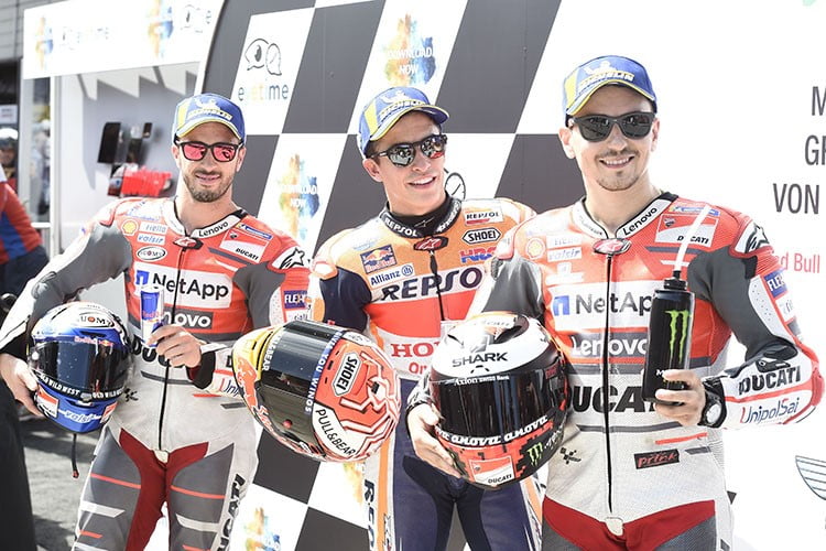 La conclusion sur GPOne est implacable : « Andrea sera notre premier pilote, Danilo son coéquipier.  On n’utilisera pas le mot « co-pilote », mais Dovi a montré qu’il peut gagner le titre, et entre les deux il y a un respect mutuel. Petrucci n’a pas encore gagné, et peut-être que rentrer dans l’équipe officielle lui donnera ce quelque chose en plus qu’il ne peut bien sûr pas avoir dans l’équipe satellite de Pramac ».