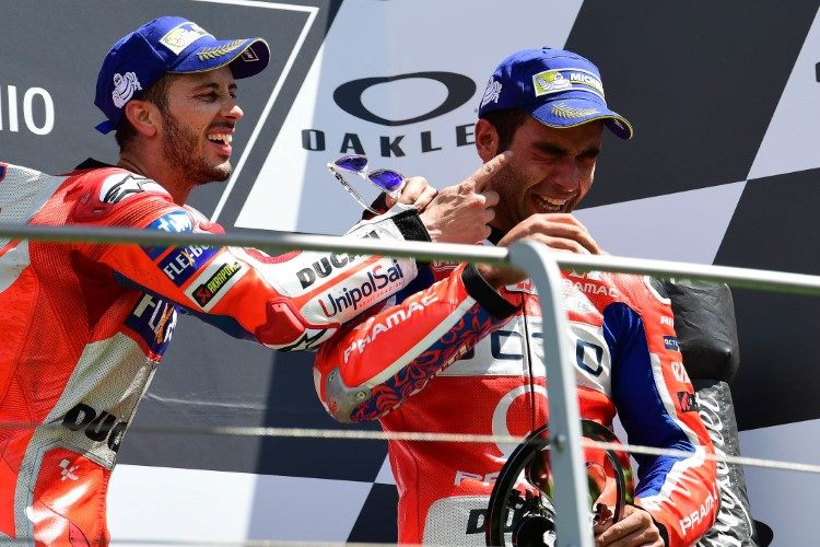 Ducati ne fait pas les choses à moitié en MotoGP. Trois GP18 pour les pilotes officiels, Petrucci y compris, trois GP17 pour Bautista, Rabat et Miller, et deux GP16 pour Abraham et Simeon. Cela nous fait bien huit motos contre six chez Honda, quatre chez Yamaha tandis que tant KTM, Aprilia que Suzuki se contentent de leurs deux engins d’usine.