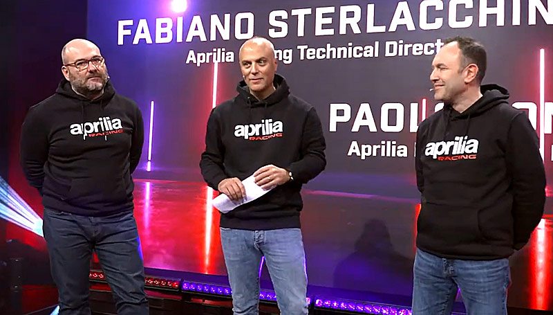 La présentation Aprilia Racing, qui s’est tenue hier à Milan grâce au soutien de Sky Sports, s’est tout d’abord ouverte avec l’historique Max Biaggi avant l’arrivée du duo Fabiano Sterlacchini et Paolo Bonera.