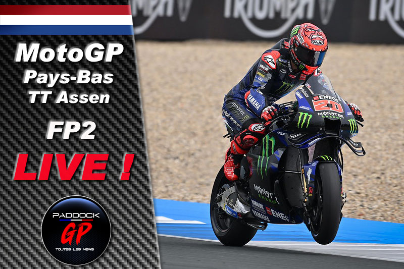 Vendredi lors de la Practice MotoGP, avec un temps de 1’31.156 Fabio Quartararo (Monster Energy Yamaha MotoGP) a offert à Yamaha les honneurs du premier jour du Grand Prix Motul des Pays-Bas, lors d’une journée plus que mouvementée au TT Assen. Alex Marquez (BK8 Gresini Racing MotoGP), malgré une chute lors des essais, aborde la journée de samedi en tant que deuxième pilote le plus rapide, tandis que Pedro Acosta (Red Bull KTM Factory Racing) commence son week-end avec une troisième place encourageante.