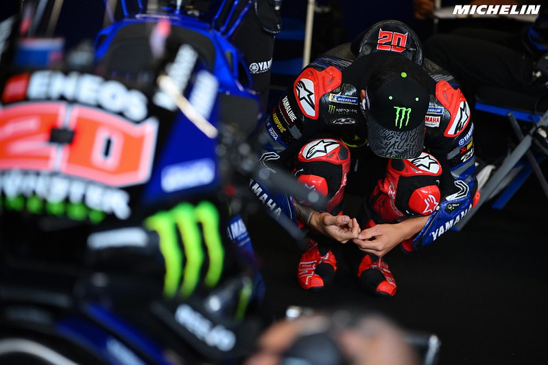 Le champion du monde 2021 était en effet contraint de s’aligner au départ avec un pneu avant tendre usé de 7 tours ! Concrètement, le team Monster Energy Yamaha MotoGP ne disposait samedi après-midi que d’un seul pneu avant tendre qu’il conservait pour le Grand Prix du dimanche.