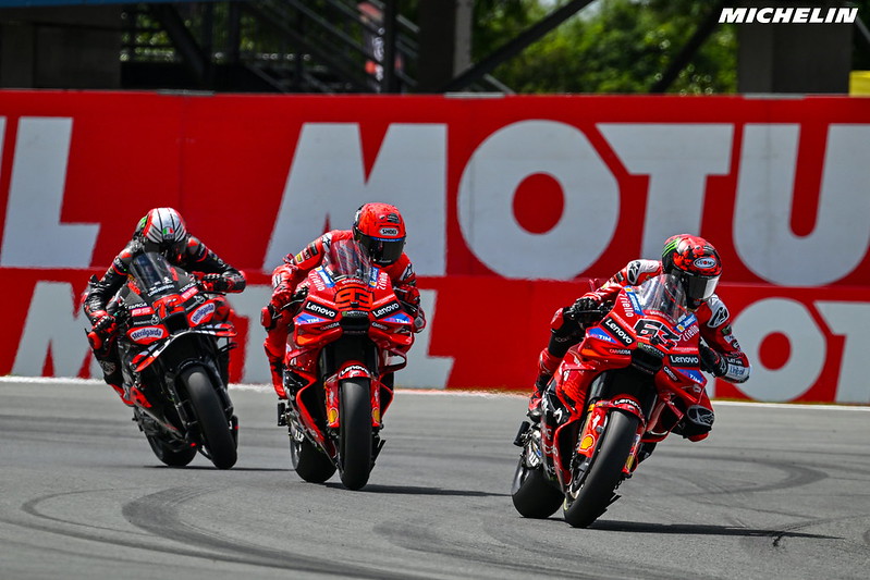 🎤 Pecco, dans cette lutte avec Pedro, vous disiez la semaine dernière qu’après 6 ou 7 tours, vous ressentiez une baisse de performance du pneu avant. Cette fois, vous êtes resté derrière Pedro pendant ces 6-7 tours, puis vous avez attaqué à nouveau avec un très bon rythme, allant parfois jusqu’à rattraper un peu les deux pilotes de tête. En deux tours, vous avez signé le meilleur chrono. Que se passe-t-il avec le pneu avant ?