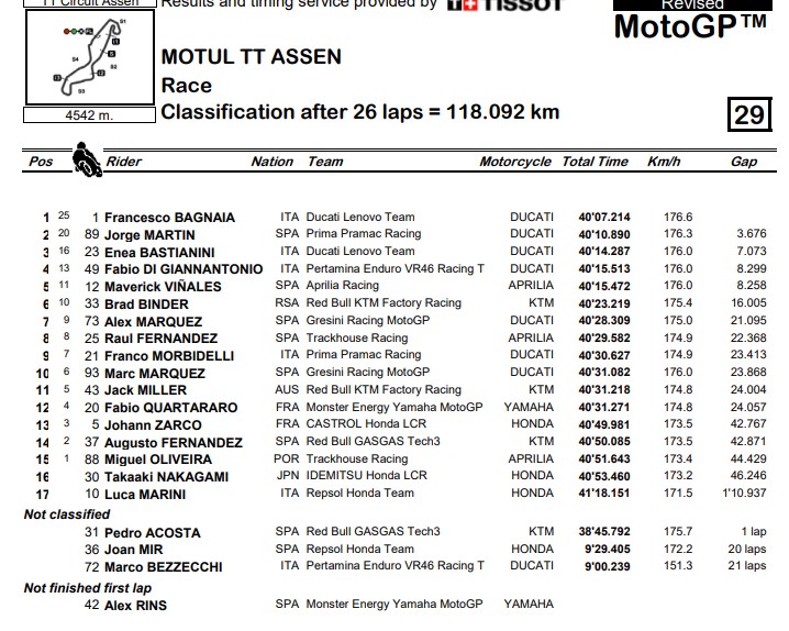 Résultats du Grand Prix des Pays-Bas MotoGP 2024 :