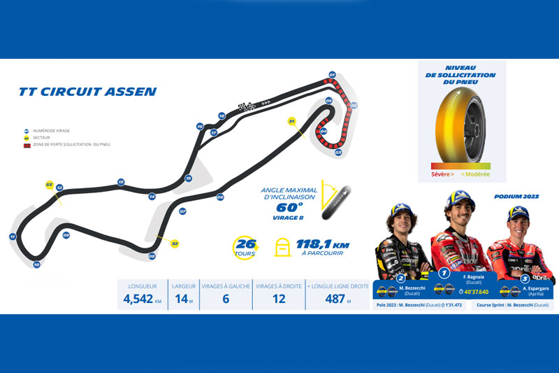 • La huitième manche du Championnat du Monde FIM MotoGP ™ retrouve le TT Assen, surnommé la « Cathédrale de la vitesse ». Un circuit contraignant pour les pneumatiques, et une météo qui peut réserver des surprises.