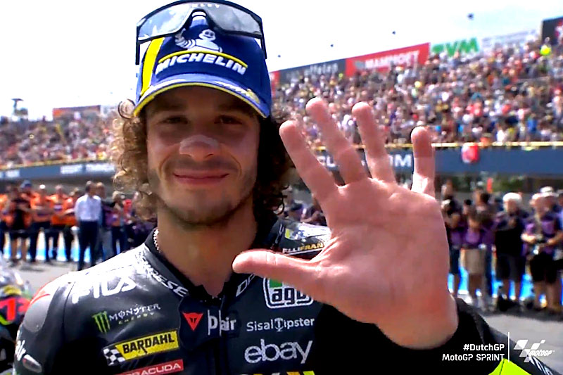 A peine descendu de sa Ducati GP22 de l’équipe Mooney VR46 Racing Team après avoir remporté le Sprint du Grand Prix des Pays-Bas à Assen, Marco Bezzecchi s’est confié devant les caméras du site officiel MotoGP.com avec la satisfaction de vivre un weekend fantastique…