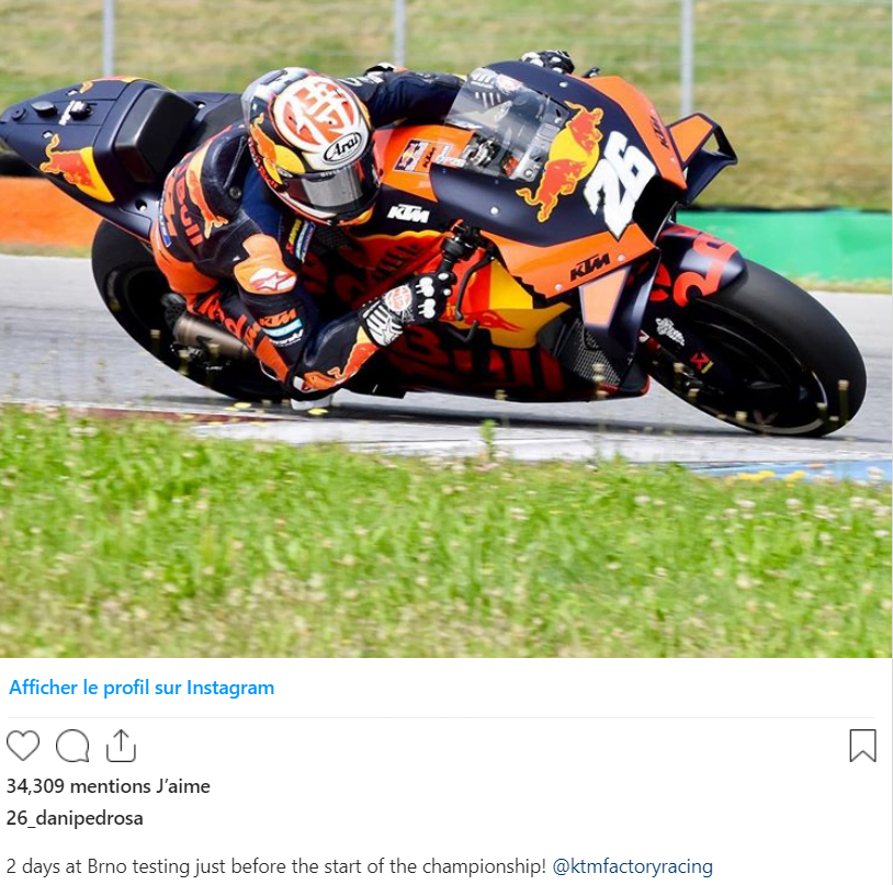 La règlement technique est figé jusqu’en 2022, mais cela ne veut pas dire qu’il n’y a plus rien à faire sur les motos. La preuve avec KTM qui a envoyé Dani Pedrosa à Brno pendant deux jours pour mettre la RC16 à son expertise. Un travail dont s’est acquitté avec joie celui qui fait le bonheur du constructeur de Mattighofen, et l’unanimité parmi les pilotes titulaires qui n’ont de cesse de louer sa contribution au projet.