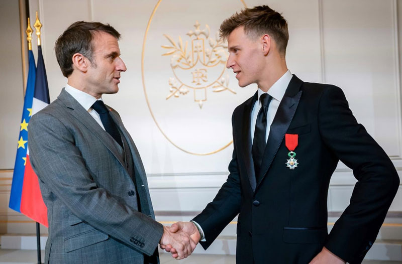 Fabio Quartararo, âgé de 24 ans, est devenu en 2021 le premier Français à remporter le titre de Champion du Monde dans la catégorie reine des Grands Prix moto. Il a été honoré aux côtés de sa famille et de son ami Tom lors d’une cérémonie officielle. La Légion d’honneur, la plus haute distinction française, a été créée par Napoléon Bonaparte, et le rang de chevalier est le premier des cinq niveaux.