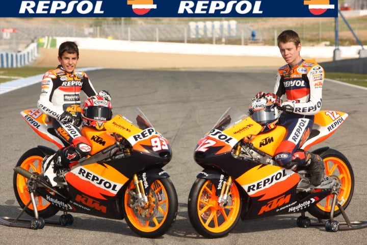 Les deux premières saisons (2008/2009) avec KTM ont été un apprentissage difficile avec peu de résultats, ce qui lui a fait du bien lorsqu’il est arrivé chez Derbi en 2010 et a finalement eu une moto compétitive. Il y a eu plus de cas dans l’histoire, de plus en plus de pilotes qui ont souffert d’une moto qui n’était pas à leur niveau mais qui ont maintenu l’effort, pour faire deux ou même trois pas en avant, et arriver à la bonne place. Quand ils ont choisi la marque autrichienne pour faire entrer Marc Márquez dans le championnat, cela ne leur a pas semblé être une mauvaise option. Ce n’était pas la meilleure, Aprilia était dans ce cas, mais avec la KTM le pilote japonais Koyama avait terminé troisième en 2007.