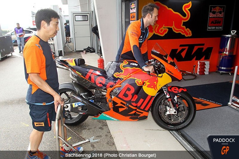 Comble de malchance, Mika Kallio, pilote d’essai officiel pour Mattighofen, s’est également lourdement blessé au Sachsenring, ce qui n’a pas favorisé le développement de la RC 16.
