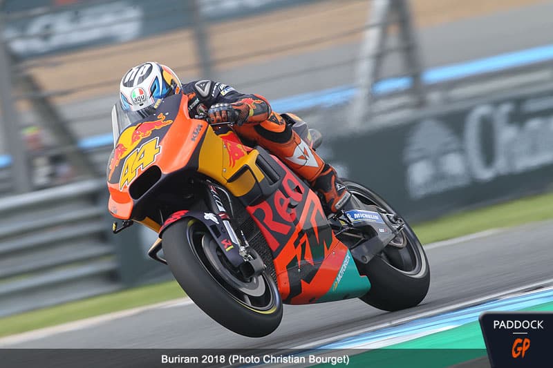 Après une année 2017 prometteuse, la saison 2018 s’est révélée difficile pour KTM. Les ennuis ont commencé dès les premiers tests à Sepang avec une très grosse chute pour Pol Espargaro qui s’est à nouveau blessé sérieusement à deux reprises durant la saison, aux vertèbres à Brno et à la clavicule en Aragon.