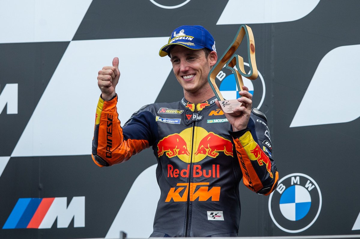 C’est une interprétation à laquelle Pol Espargaró tient. Et cela se comprend, car elle marque de son empreinte l’histoire d’une RC16 qui gagne à présent des Grands Prix. Une légitimité qui ne serait nullement contestée s’il avait été un des deux victorieux sur la moto autrichienne en cinq Grands Prix disputés cette année. Mais c’est son jeune équipier Brad Binder, avec trois courses MotoGP au compteur, qui a ouvert le compteur de Mattgihoffen, entrant ainsi de plain-pied dans l’histoire de la marque. Puis Oliveira a doublé la mise, laissant Pol Espargaró d’autant plus en arrière-plan que les mérites du pilote test Dani Pedrosa sont chantés. Alors il rappelle qu’il était là au début du projet…