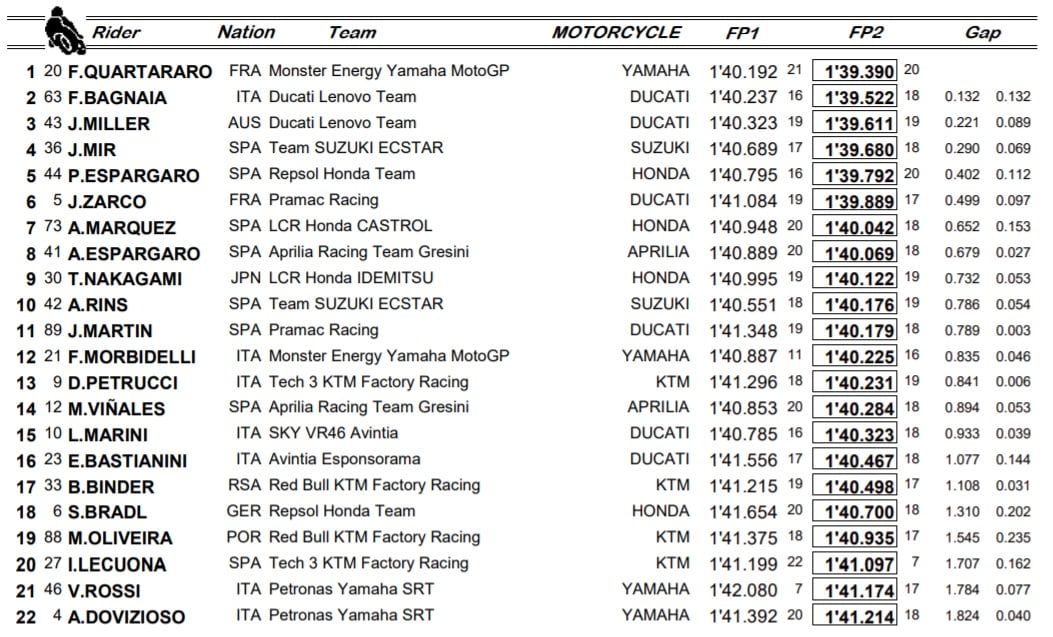 MotoGP – Portimão-2 – Temps combinés FP1 & FP2 :