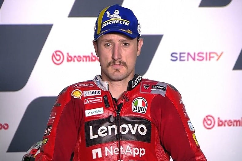 « Par ailleurs nous disposons de nombreux jeunes talents avec Jorge Martín, Enea Bastianini, Luca Marini… Pour ma part je roule sur une Ducati depuis 2017 [sic, Miller a commencé à rouler en 2018 sur Ducati chez Pramac, il évoluait encore sur une Honda RC213V de l’équipe Marc VDS en 2017] et j’ai pu vraiment voir la moto évoluer au fil des années, et je peux vous dire qu’entre mes débuts avec Ducati et aujourd’hui c’est le jour et la nuit. »