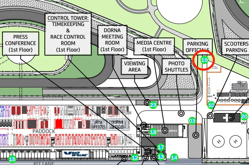 Les pilotes disposant de pit boxes temporaires accéderont au circuit par le pit box 26.