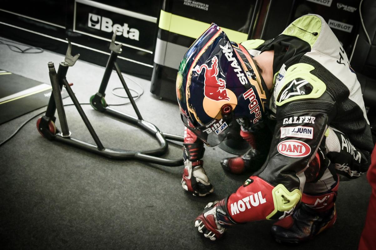 Il ajoute : « c’est une nouvelle piste et c’est Bradl qui m’étonne, il a tout son contrôle mais il a fait des tests ici. C’est un tracé intéressant, la moto bouge beaucoup et il faut la garder par terre. Notamment entre le virage 8 et 9, il faut la plaquer sur la bosse car c’est comme ça qu’on passe le plus vite, avec les deux roues par terre.