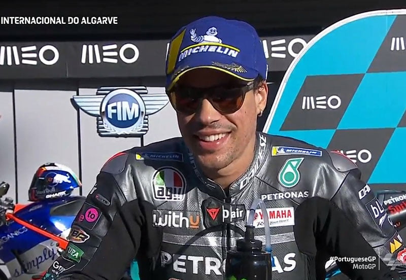 A peine descendu de sa Yamaha YZR-M1 satellite du team Petronas Yamaha SRT après avoir obtenu la deuxième position sur la grille de départ du Grand Prix du Portugal à Portimão, Franco Morbidelli s’est confié devant la caméra du site officiel MotoGP.com avec la joie de s’être sorti d’une situation délicate…