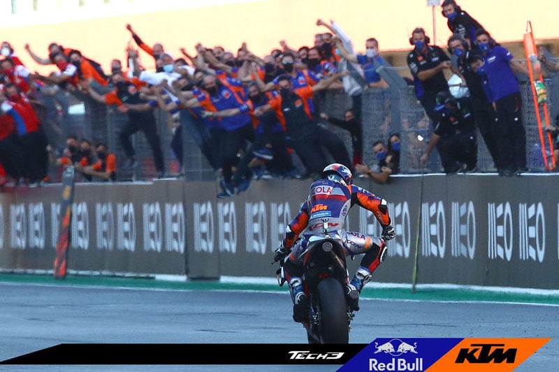 « Vous savez, une contribution normale. Je dirais qu’il s’agissait d’un Grand Prix quasiment normal en termes d’approche et de réglages. Nous espérions simplement avoir un bon feeling car il s’agissait d’un Grand Prix à domicile pour moi, et le team a pris ça de façon très personnelle et a voulu très bien faire. Je suppose que nous sommes arrivés avec un petit avantage car je connaissais le circuit, et en particulier lors de la FP1, j’ai pu leur fournir des informations peux être meilleur. Et c’était tout ! La contribution d’Alex et de Guy, mais aussi de toute la structure KTM qui est derrière nous, et de toute l’équipe, des mécaniciens au préposé aux pneus, tout le monde est important et est toujours une partie de ce succès. »