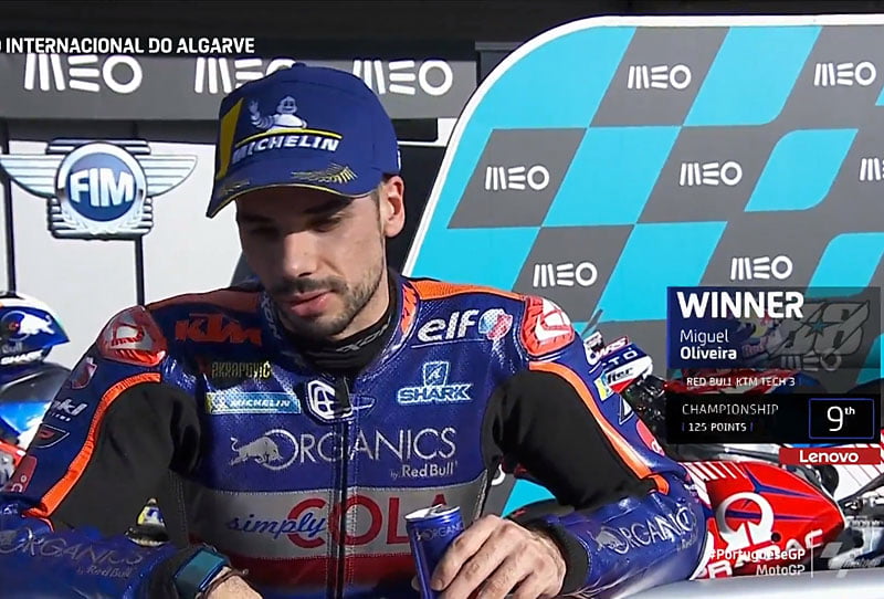A peine descendu de sa KTM RC16 satellite du team Red Bull KTM Tech3 après avoir remporté le Grand Prix du Portugal à Portimão, Miguel Oliveira s’est confié devant la caméra du site officiel MotoGP.com avec la joie d’obtenir sa deuxième victoire de l’année, cette fois à domicile…