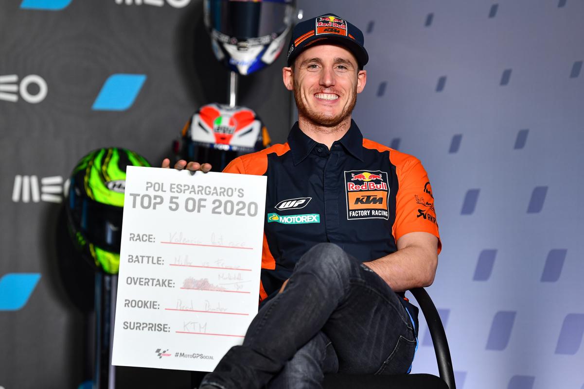 Pol Espargaró restera donc chez KTM celui qui a été du début du projet RC16 il y a quatre ans, et qui l’aura quitté sans le moindre succès. Et pourtant, la moto autrichienne en compte trois, récoltés cette année. La première victoire est revenue à son jeune équipier, rookie de l’année, Brad Binder et c’est maintenant Miguel Oliveira qui est le plus récompensé de la marque avec deux réalisations. Certes, mais le travail de l’Espagnol n’a pas été vain. Avec ses podiums, il a mis le blason de Mattighofen dans le top 5 du classement des pilotes et il n’a pas été pour rien dans la quatrième position constatée au classement des constructeurs…