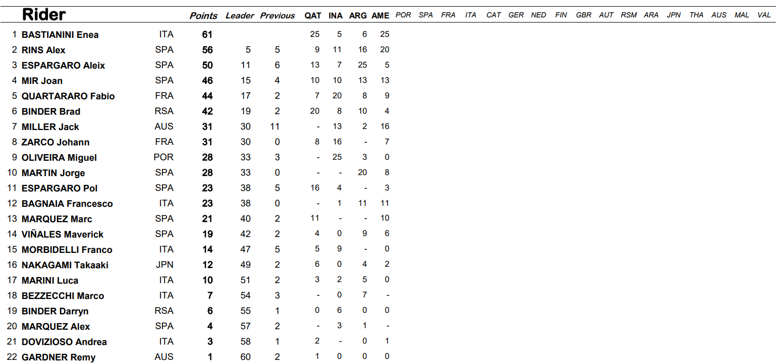 Crédit classement : MotoGP.com