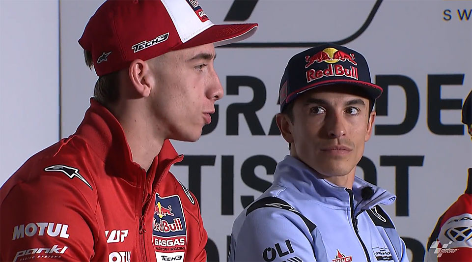 « Oui (rires) ! J’ai déjà dit que c’en était un bon. Je veux dire qu’il faut croire en la moto pour faire ça, surtout parce que si l’on prend le grip de manière agressive, on peut s’envoler. Mais c’en était un bon. Il a un très bon style de pilotage. Quand ils arrivent de la Moto2, ils ont une très bonne vitesse dans les virages et quand j’ai suivi Pedro pendant ces deux tours dans la course, il était très rapide dans les virages rapides, et c’est ce qui a fait la différence. »