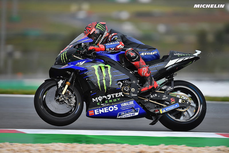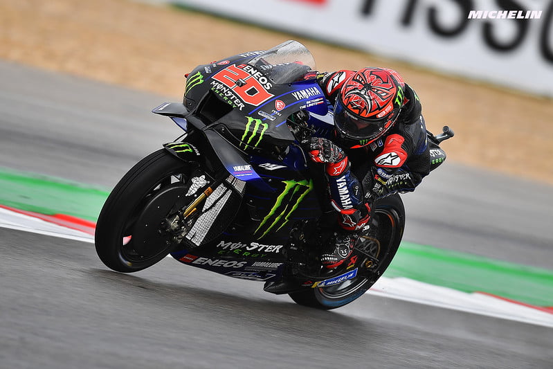 Fabio Quartararo : « Je dirais que je suis super heureux aujourd’hui car hier, j’ai dit que la position était mauvaise mais que nous avions senti quelques progrès. Ce matin, sur une piste totalement humide, on a fini à moins d’un dixième de Miguel. Puis en FP4, dans des conditions mixtes, nous avons fini cinquième, alors que les conditions mixtes avec des slicks sont les pires pour moi. Je pense que comme tout le monde, ils ont annulé mon dernier tour, mais ce n’est pas ce qui est dommage. C’est que j’ai raté un tour supplémentaire pour deux secondes à cause du drapeau à damier. C’est ça qui est dommage ! Mais je suis vraiment très content et si quelqu’un m’avait dit avant de commencer la Q2 que je serai en deuxième ligne, j’aurais signé. Je suis donc heureux. »