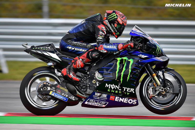 Fabio Quartararo : « Je dirais que je suis super heureux aujourd’hui car hier, j’ai dit que la position était mauvaise mais que nous avions senti quelques progrès. Ce matin, sur une piste totalement humide, on a fini à moins d’un dixième de Miguel. Puis en FP4, dans des conditions mixtes, nous avons fini cinquième, alors que les conditions mixtes avec des slicks sont les pires pour moi. Je pense que comme tout le monde, ils ont annulé mon dernier tour, mais ce n’est pas ce qui est dommage. C’est que j’ai raté un tour supplémentaire pour deux secondes à cause du drapeau à damier. C’est ça qui est dommage ! Mais je suis vraiment très content et si quelqu’un m’avait dit avant de commencer la Q2 que je serai en deuxième ligne, j’aurais signé. Je suis donc heureux. »