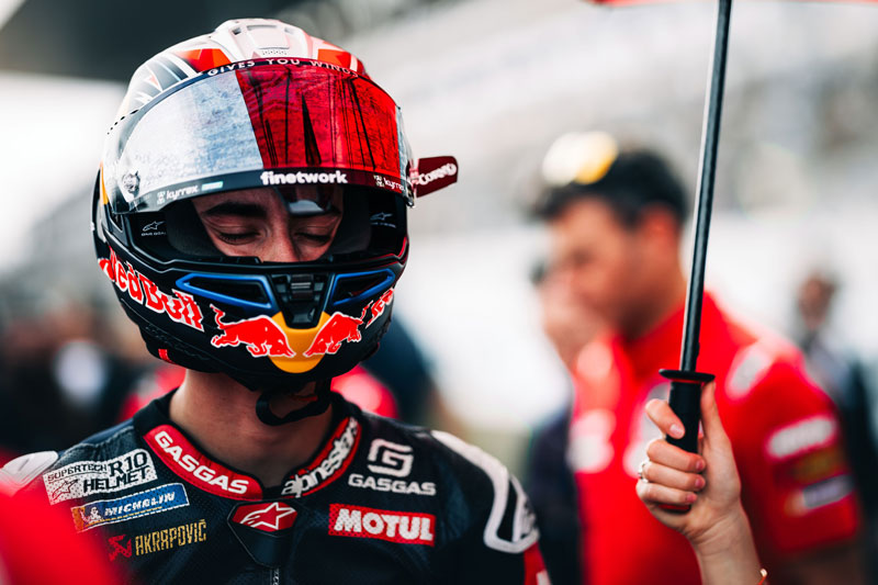 Pedro Acosta : « Le départ, le départ. Je veux dire, si vous regardez, je perds beaucoup de temps dans le premier tour, 2,5s du premier, et ensuite j’étais à 5 secondes de Maverick. Maintenant, je perds moins de temps pendant la course qu’au Qatar, si on enlève le premier tour. Nous devons être plus concentrés sur le départ. Demain, nous essaierons tous les réglages de l’embrayage, parce que je fais quelque chose d’étrange avec l’embrayage. Peut-être qu’il faut un câble d’embrayage et non de l’hydraulique, disons, mais quoi qu’il soit nous avons besoin de temps. Parfois, nous avons besoin de changer le guidon, parfois nous avons besoin de changer certains leviers de freins et ces choses, parce que nous avons besoin de plus de temps sur la moto, nous avons besoin de plus de tours, nous avons besoin d’être plus à l’aise sur la moto. »