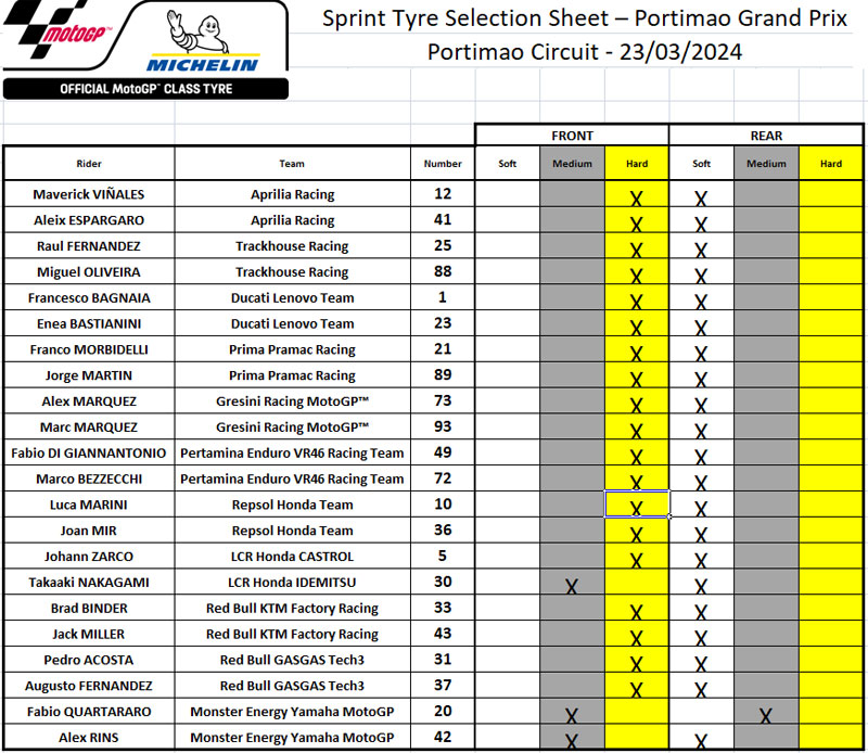 Lors du Sprint du Grand Prix MotoGP du Portugal, tous les pilotes sont partis avec un pneu Michelin arrière tendre sauf un, Fabio Quartararo.