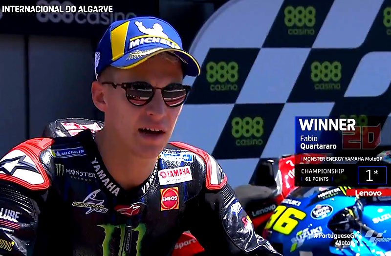 A peine descendu de sa Yamaha YZR-M1 officielle après avoir remporté le Grand Prix du Portugal à Portimão, Fabio Quartararo s’est confié devant la caméra du site officiel MotoGP.com avec la joie de mener dorénavant le championnat après sa 5e victoire en MotoGP…