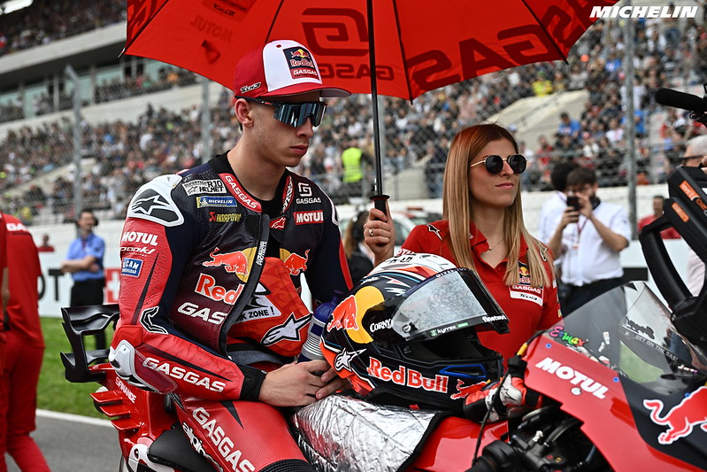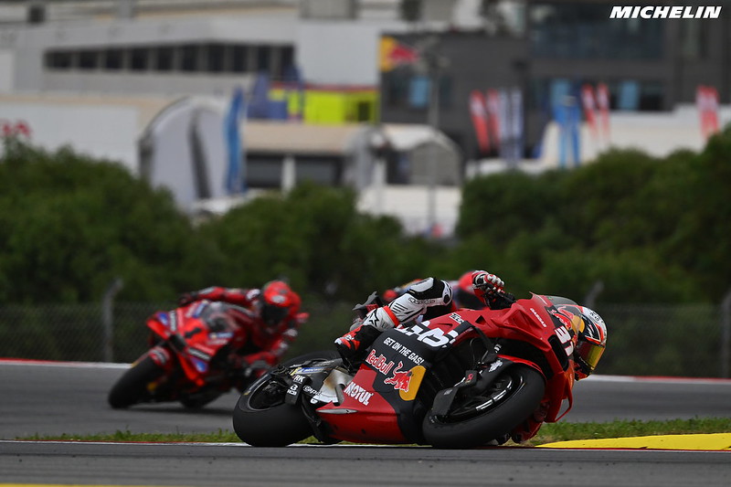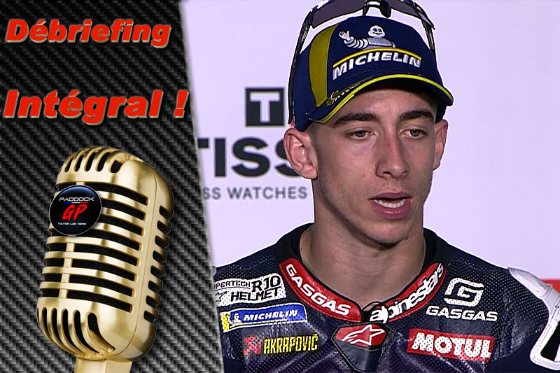 « Eh bien, au final, j’avais de la vitesse. Je veux dire que cette situation est tout à fait normale pour moi, avec un réservoir plein et de nombreux tours à faire. Pour l’instant, la course de sprint est assez difficile, parce que vous voyez ces gars partir à fond dès le début et se soucier de rien, vous savez, et j’ai quelques problèmes avec le petit réservoir, mais de toute façon à la fin j’étais très à l’aise avec la moto dans les deux courses, comme au Qatar, pour faire des dépassements. C’est une sensation très familière, vous savez, depuis l’époque de la Moto3 et de la Rookies Cup, avec le pneu avant. C’est pour cela que je ne me suis pas concentré sur le top 5, mais sur la façon dont la course s’est déroulée, sur la façon dont je devais économiser les pneus, parce qu’au Qatar, on a vu que j’avais beaucoup de mal en fin de course. J’ai aussi essayé de copier les mouvements de Pecco sur la moto, parce qu’il est l’un des meilleurs pour économiser les pneus le dimanche. Je suis heureux d’avoir pu apprendre beaucoup de choses derrière lui. »