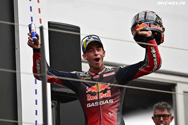 Pedro Acosta : « On peut être heureux, on peut être heureux ! Je veux dire, rappelez-vous que vendredi après-midi, je n’étais pas en Q2. C’était le premier week-end compliqué pour nous parce que c’était un nouveau circuit pour nous avec une MotoGP. Imaginez que le premier jour du shakedown, j’étais assez loin de Pol et de Dani. La direction est beaucoup plus facile, vous savez, ils gèrent ma tête de manière super sympa. Je sais que je ne suis parfois pas la personne la plus facile dans un week-end de course. Je suis très heureux, car vous ne pouvez pas imaginer tout le travail qu’ils font l’après-midi et la nuit. Tous les matins, au réveil, j’ai une vingtaine de messages dans le téléphone de mes données et aussi de mon chef d’équipe, avec beaucoup de choses à améliorer ou beaucoup de choses à vérifier. C’est pour ça que je suis super heureux, super heureux de ce week-end. »