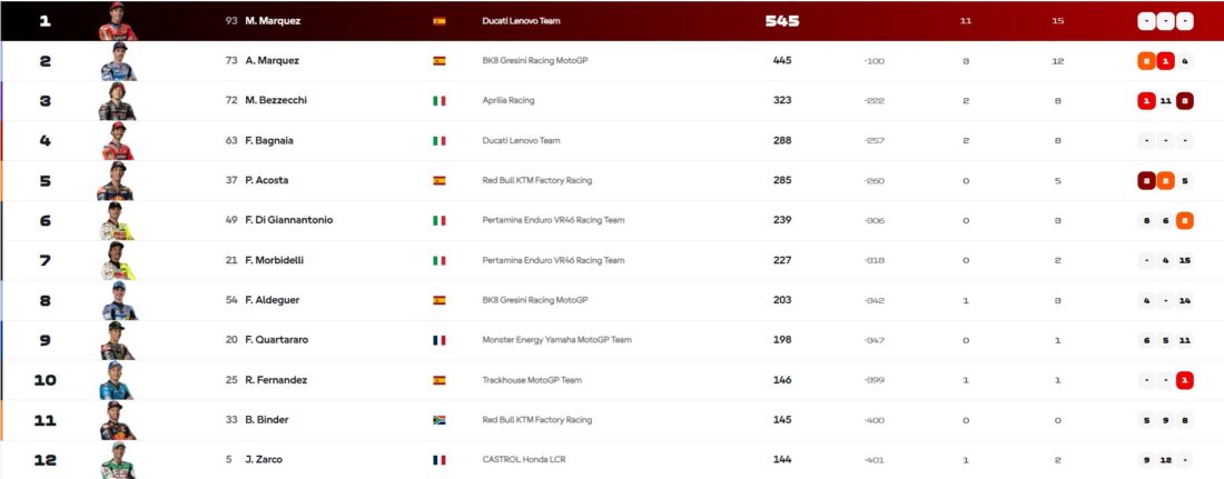 Crédit classement : MotoGP.com