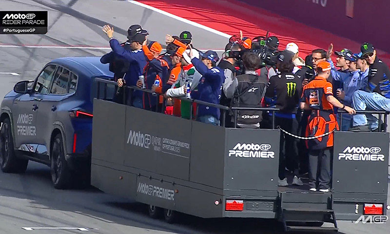 La parade des pilotes MotoGP a su faire sa place dans le programme du week-end en devenant une tradition qui satisfait à la fois les spectateurs présents, aujourd’hui à Portimão pour le Grand Prix du Portugal, mais aussi les pilotes pour qui il s’agit du seul moment où ils peuvent communiquer tous ensemble sans enjeu.