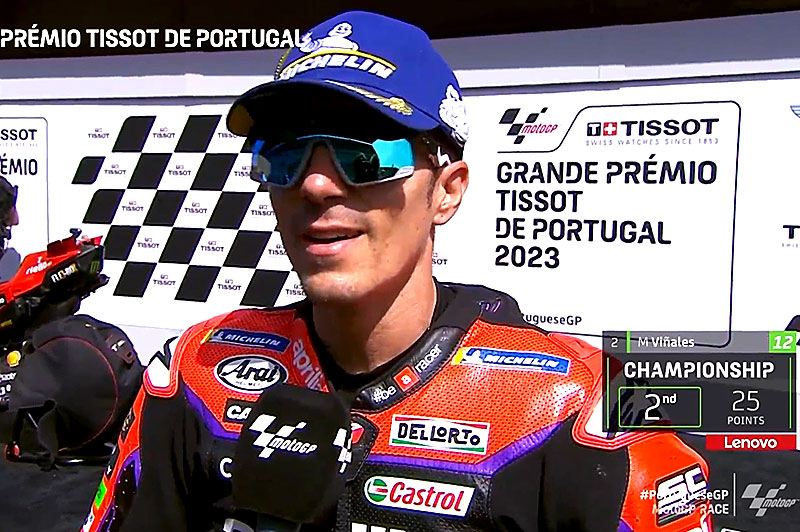 A peine descendu de son Aprilia RS-GP officielle après avoir terminé 2e du Grand Prix du Grand Prix du Portugal sur le circuit de Portimão, Maverick Viñales s’est confié devant les caméras du site officiel MotoGP.com avec la joie qu’on lui connaît quand tout va bien…