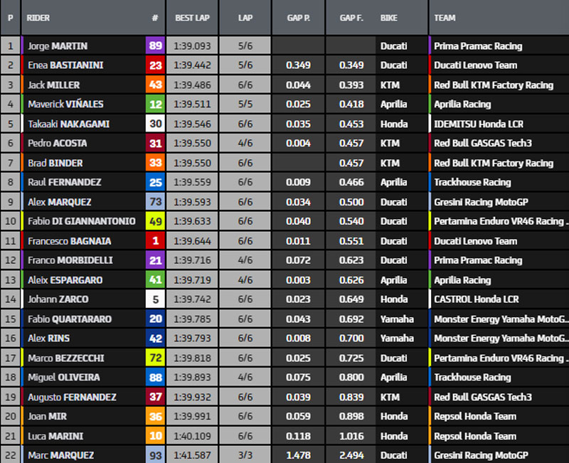 A l’approche de la dernière minute, Jorge Martin s’empare du commandement en 139093 devant Enea Bastianini, Pedro Acosta, Franco Morbidelli et Aleix Espargaro.