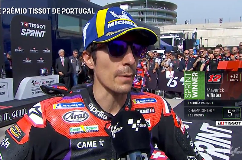 A peine descendu de son Aprilia RS-GP 2024 officielle après avoir remporté le Sprint du Grand Prix MotoGP du Portugal sur l’Autodrome International de l’Algarve à Portimão, Maverick Vinales s’est confié devant les caméras du site officiel MotoGP.com avec la satisfaction de remporter sa première victoire avec Aprilia, mais n’explose pas de joie et reste focalisé sur le GP…
