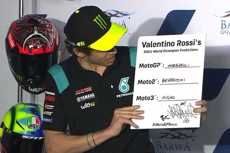 Cette année, dans la mesure du possible, c’est-à-dire si le planning des visioconférences le permet, nous avons décidé de suivre au plus près Valentino Rossi dans sa nouvelle aventure au sein de l’équipe Petronas SRT, comme nous le faisions donc déjà pour Johann Zarco (voir ici) et Fabio Quartararo (voir ici) lors des saisons précédentes.