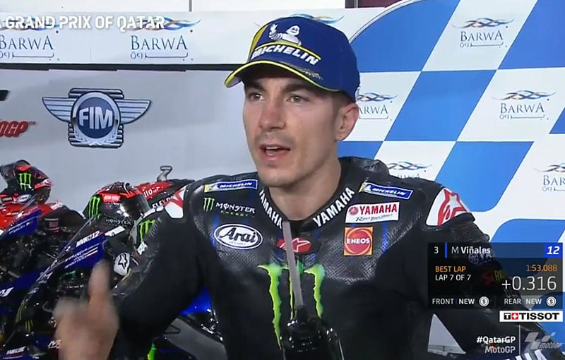 A peine descendu de sa Yamaha YZR-M1 officielle après avoir obtenu la troisième position sur la grille de départ du Grand Prix du Qatar, Maverick Viñales s’est confié devant la caméra du site officiel MotoGP.com avec l’assurance de pouvoir jouer aux avant-postes demain…