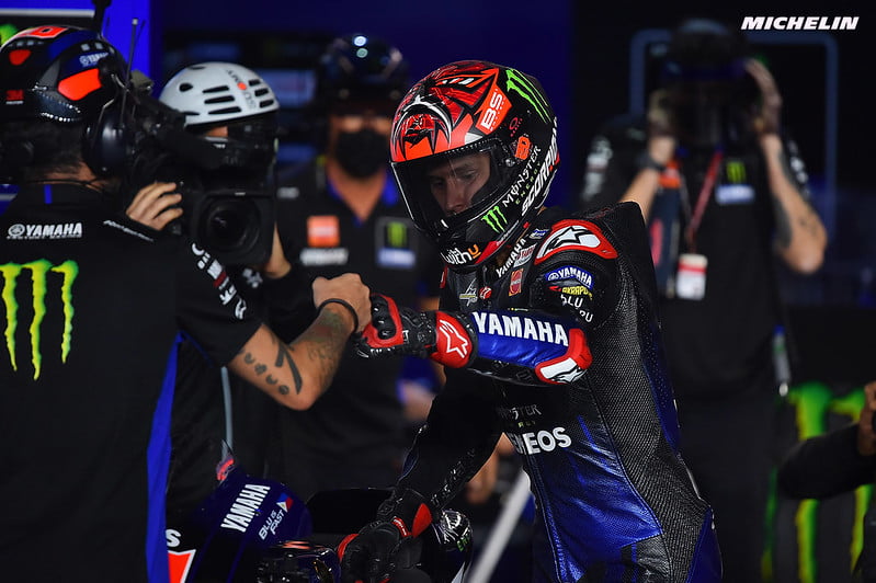 Fabio Quartararo : « Oui, nous avons fait un grand pas en avant, en particulier dans le pilotage ! Malheureusement, nous avions une boîte plus courte lors de la qualification, et vous savez, quand vous avez fait un Grand Prix et cinq jours de test, j’ai mes références partout : Vous freinez à un certain régime et quand je passe une vitesse, je ne regarde pas les lumières (du tableau de bord). Je sais quand je dois changer. Et aujourd’hui, notre point fort que sont les virages 1, 4 et 7, les lumières s’allumaient très tôt et je freinais trop tôt. Nous avons donc fait une petite erreur en faisant une boîte plus courte, mais je me sens heureux car la FP4 a été très bonne et je sens que nous avons un très bon potentiel pour demain. »