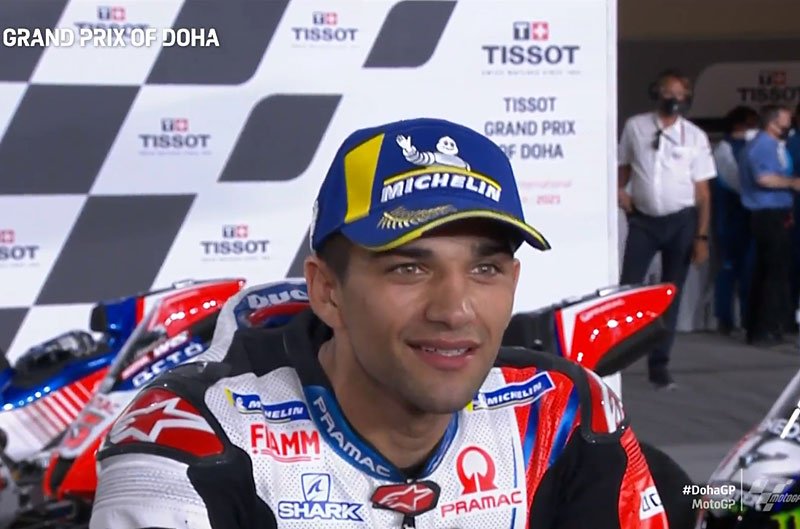 A peine descendu de sa Ducati GP21 du team Pramac Racing après avoir obtenu la pole position sur la grille de départ du Grand Prix de Doha au Qatar, Jorge Martin s’est confié devant la caméra du site officiel MotoGP.com avec la joie bien naturelle d’avoir marqué un grand coup, mais aussi une certaine modestie quant à la course qui s’annonce…
